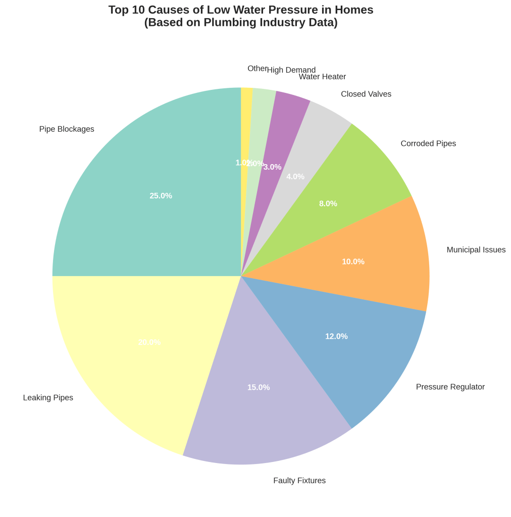 - Mineral buildup, debris, and pipe obstructions are the usual suspects when it comes to low water pressure. Routine inspections and cleaning can address these issues before they start.