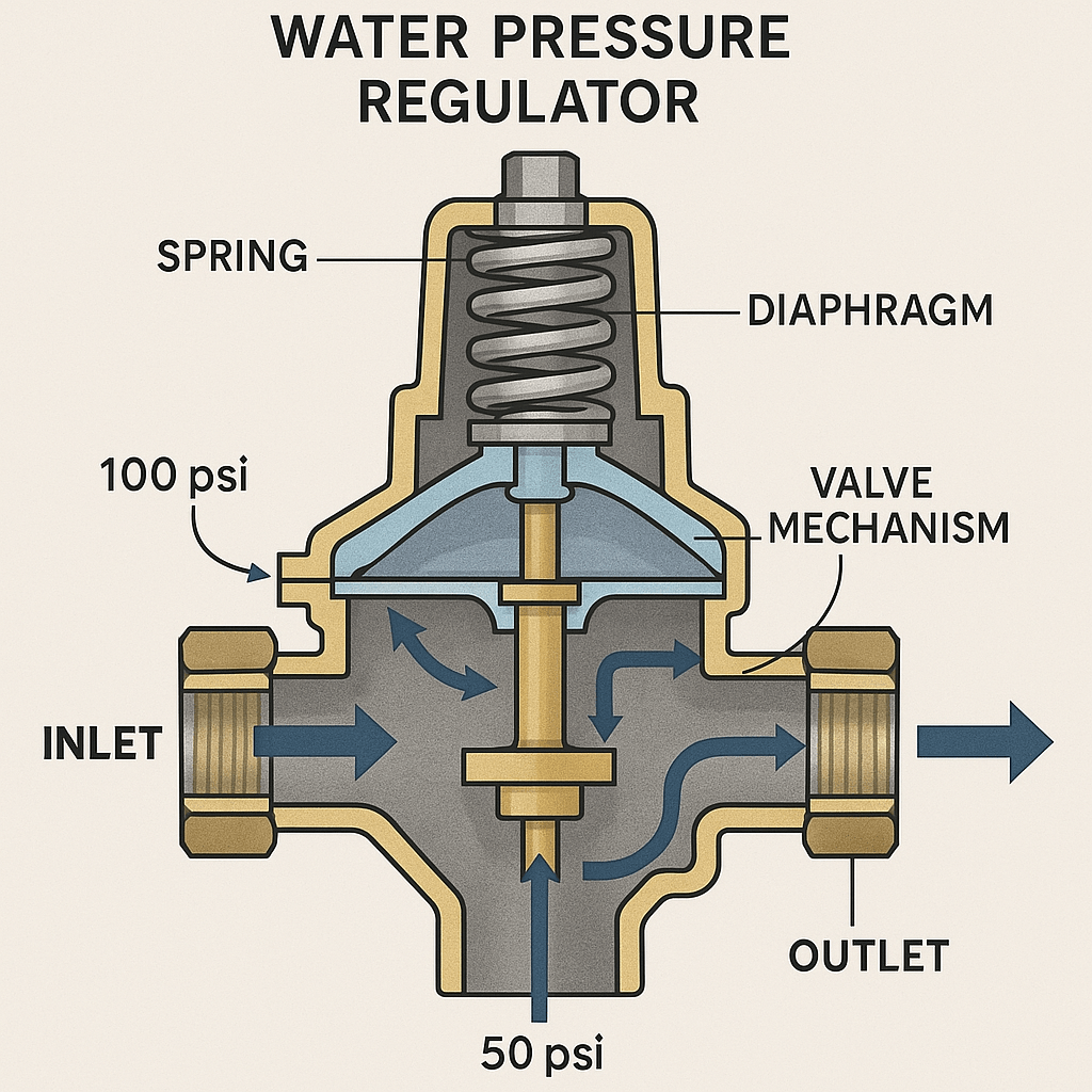 Pressure regulators are devices that help keep steady water pressure. Monitor the settings to make sure they’re appropriate for household needs.