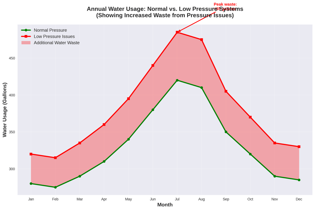 - Not only will leaking pipes lead to low water pressure, they waste a tremendous amount of water. Regular monitoring and prompt repairs are the best solution to leaks.